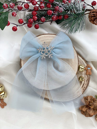 Elsa Snowflake Embellished Crystal Tulle Bow Hair Clip