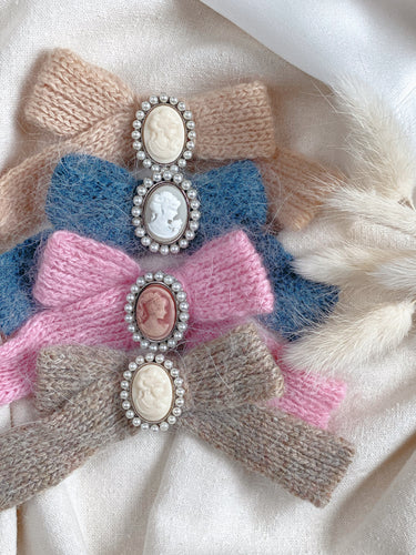 Harper Knitted Cameo Bow Hair Clip