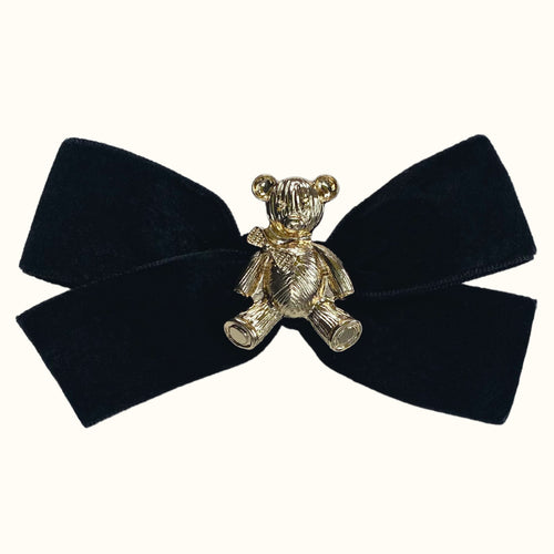 Anastasia Teddy Bear Velvet Bow Hair Clip - Black