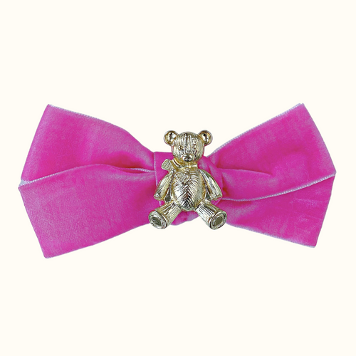Anastasia Teddy Bear Velvet Bow Hair Clip - Hot Pink