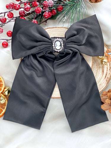 Angel Black Cameo Crystal Satin Bow Hair Clip