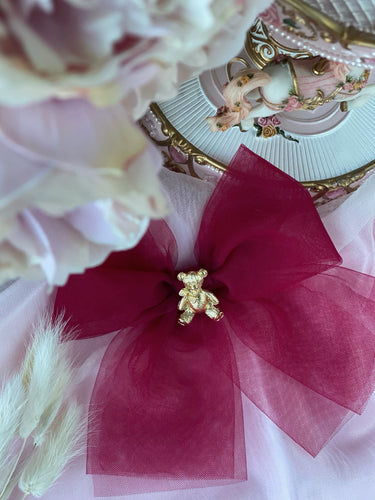Anastasia Tulle Teddy Bear Hair Bow in Black Cherry - Hair Clip
