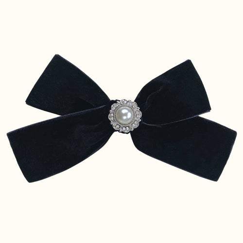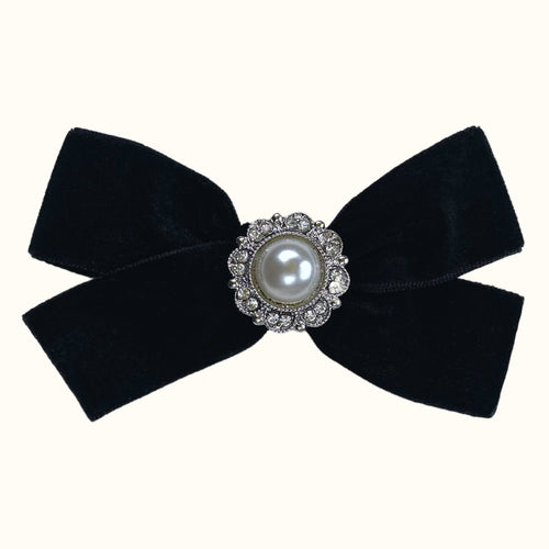 Black Pearl Velvet Bow Hair Clip