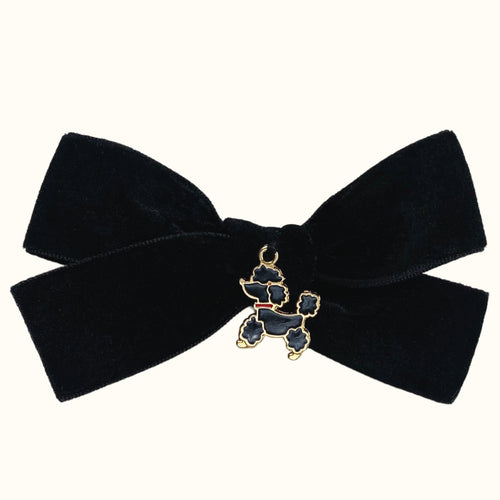 Black Poodle Velvet Bow Hair Clip