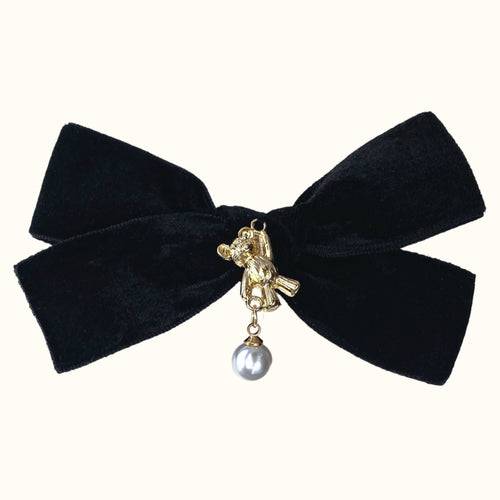 Julia Teddy Bear Velvet Bow Hair Clip - Black
