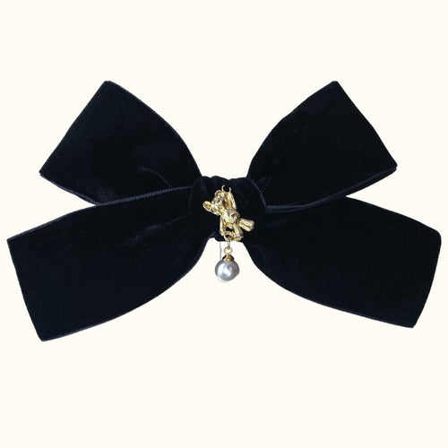 Julia Teddy Bear Oversized Velvet Bow Hair Clip - Black
