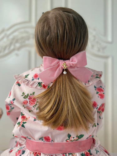Julia Teddy Bear Oversized Velvet Bow Hair Clip - Baby Pink