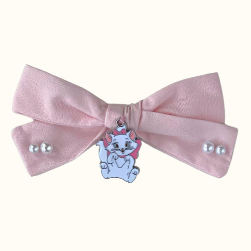 Limited Edition - Marie Kitten Loren Pearl Cotton Bow Hair Clip in Powder Pink