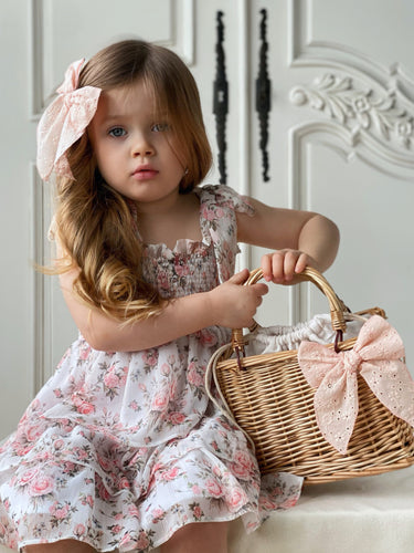 Peach Embroidered Cotton Fable Bow - Hair Clip