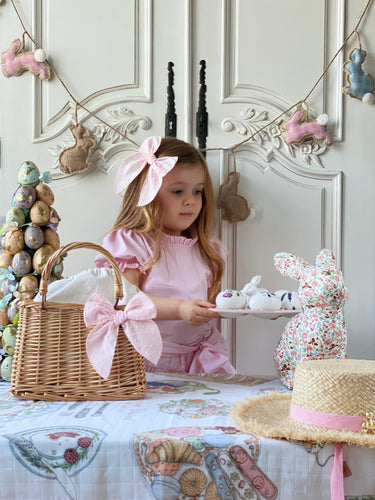 Blush Taupe Linen Cotton Fable Bow - Hair Clip